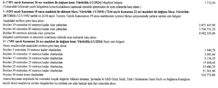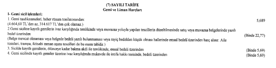 2026 YILI GEMİ VE LİMAN HARÇLARI