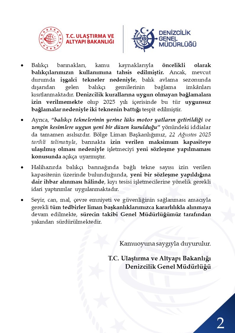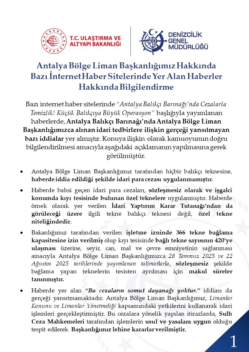 Kamuoyunun doğru bilgilendirilmesi amacıyla Denizcilik