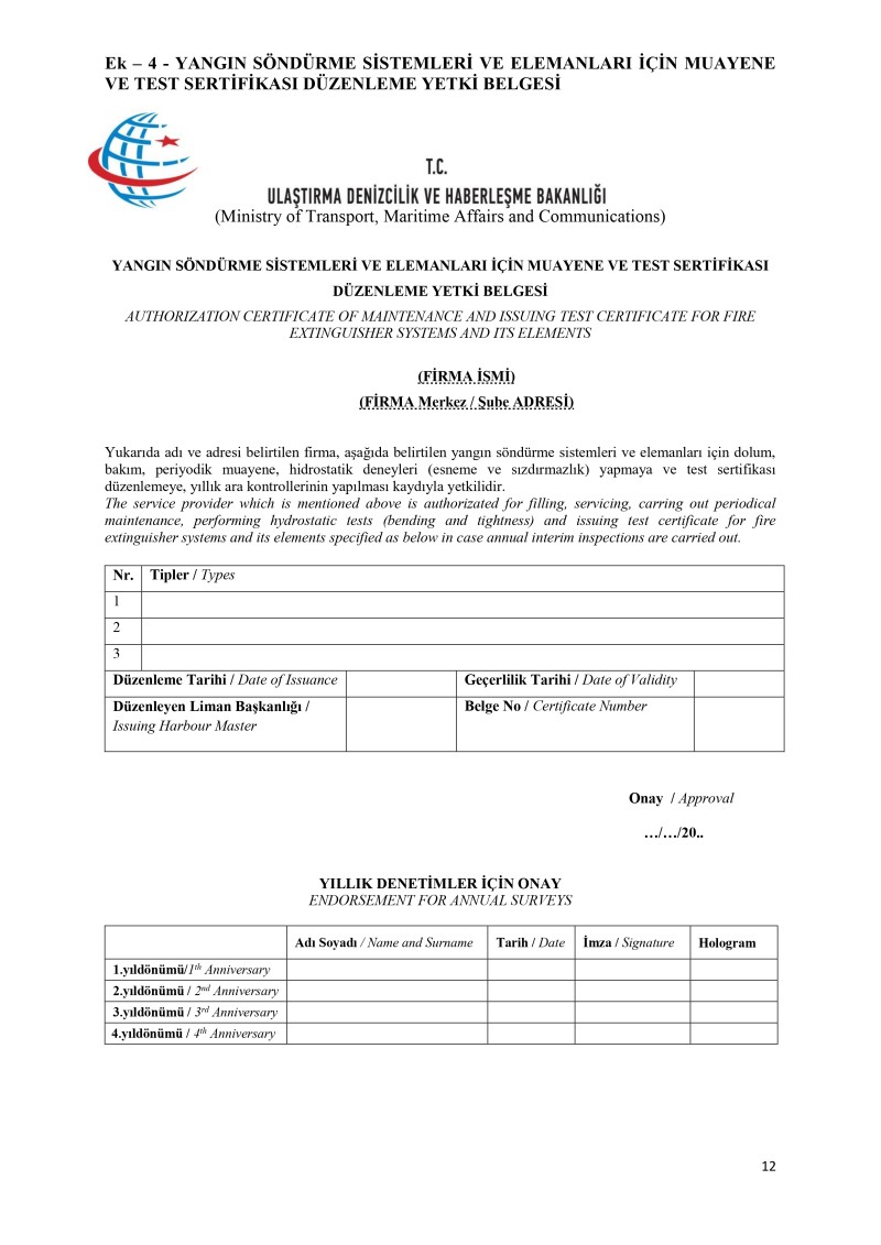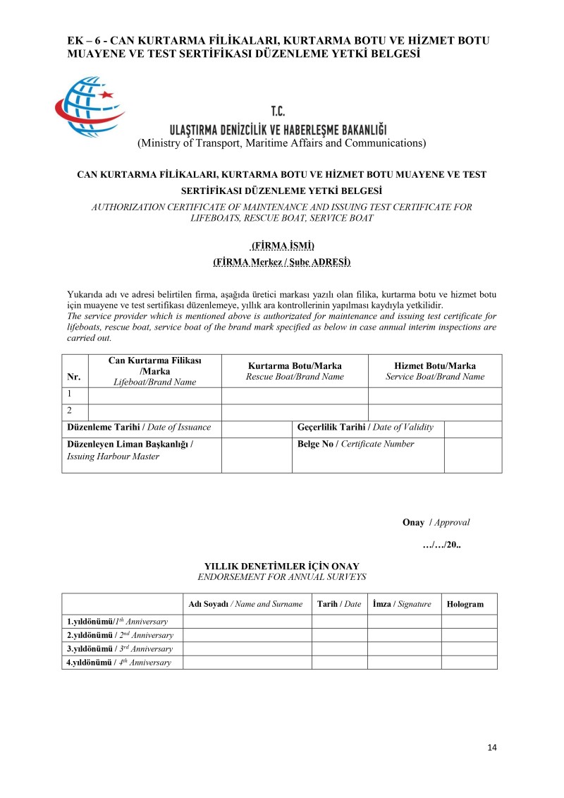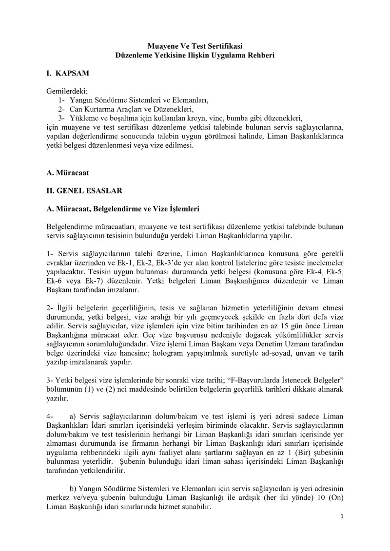 MUAYENE VE TEST SERTİFİKASI DÜZENLENMESİNE İLİŞKİN UYGULAMA REHBERİ.